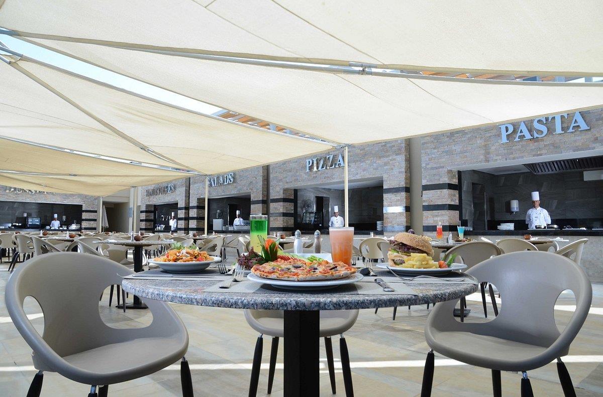 Система всё включено работает с 10:00 до 23:00 (алкоголь), питание: завтрак с 07:00 до 10:00, картофель фри на пляже с 12:00 до 13:00, обед с 13:00 до 15:00, ужин с 19:00 до 22:00. Если вы прилетели после 22:00 (после закрытия ресторана) Вас покормят в платном ресторане (бесплатно), но только лишь в том случае, если Вы этого попросите, предлагать Вам никто не станет. Если у Вас самолёт до того, как в отеле начинается завтрак, сухой паёк Вас будет ждать на рецепции, Вам нужно самим забрать, напоминать Вам никто не будет.