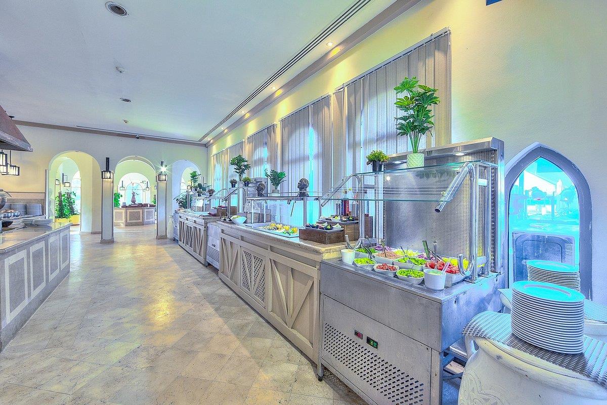 В отеле почти нет анимации, по вечерам у бассейна поет каждый вечер один и тот же местный певец, вполне прилично, репертуар - разный. Для молодежи - скучновато. WI-FI только в главном холле отеля (и не всегда удавалось подключиться). Рестораны отеля скучноваты, еда нормальная - было и мясо, и курица, и рыба, иногда - кальмары. Выпечка однообразная, из фруктов - яблоки, финики, апельсины, мандарины, дыня, грейпфрут.