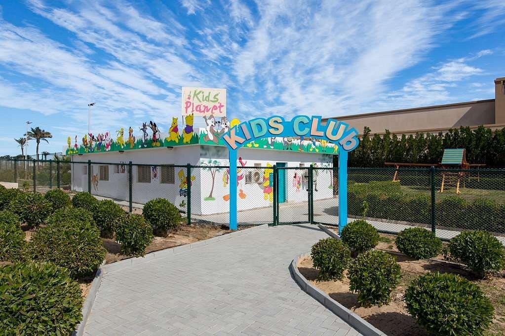 Отель находится далеко от аэропорта - ехать 3 часа от Хургады. Отель далеко не пять звёзд, а не больше трех. Мотивирую: Расположение нельзя считать на первой линии, главный ресторан даже без музыки, да и вряд-ли это ресторан, а скорее столовая с не очень разнообразной пищей (хотя голодными конечно не будете). Здесь вы не увидите, как бывает в пятизвёздочных отелях, раз в неделю торжественного представления всех поваров, чтоб отдыхающие знали кому говорить Спасибо, не попробуете приготовленные при Вас блюда на гриле, не будет у Вас и выбора между несколькими сортами мяса и морепродуктов (что странно за 12 дней не разу не удалось отведать баранину в каком либо виде). Что касается фруктов, то они подаются только в виде фруктовых салатов либо с разрезанном виде. Впервые встретили в Египте резаные на кусочки бананы. Отдыхающим с детьми нечего взять из фруктов ребенку на перекус на пляж. Отель по питанию не больше 3 звёзд. Да ещё совсем уж странно что в баре на пляже и у бассейна нет пива и вина, а только крепкие напитки и коктейли. Пиво есть только в лобби баре. Как таковой территории отель не имеет, только здания и лестница к набережной и торговой улице. Аквапарк находится через дорогу. Вечером пойти некуда. Отсюда напрашивается вывод: отель заслуживает 4 звезды с натяжкой, поэтому и стоимость должна соответствовать качеству.