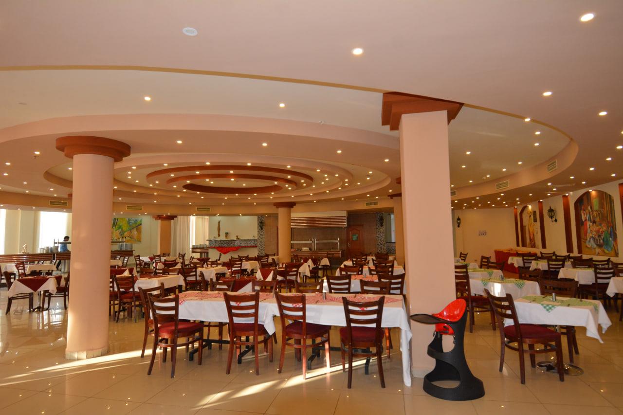 Питание в ресторане очень хорошее.Столы и посуда всегда были чистые.Блюда разнообразные и очень вкусные.Всегда присутствует мясо,рыба,курица,даже мясо ламы подавали.Изобилие разных салатов,если хочешь его сделают при тебе.На завтрак можно было попросить пожарить яичницу с разными приправами,а на ужин блинчики с джемом или шоколадом.Чай,кофе всегда горячий.Молоко и молочные блюда тоже были.Всякие сладости,разнообразные пироги,тортики,круасаны,булочки.Шэф-повар всегда сам присутствует в зале и предлагает разные блюда.Официанты работают быстро.Попросишь принести что-нибудь выпить,через 2 минуты они уже несут.В барах и у бассейна в основном алкогольные напитки местного производства,бармены делают разные коктейли. Спрайт, кола, фанта, содовая всегда есть.
