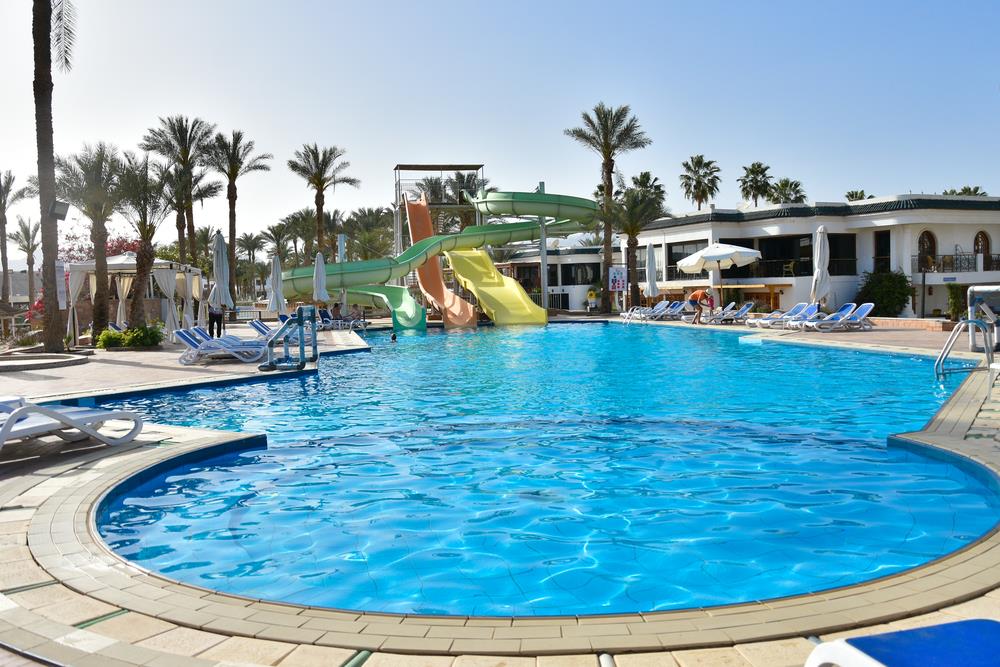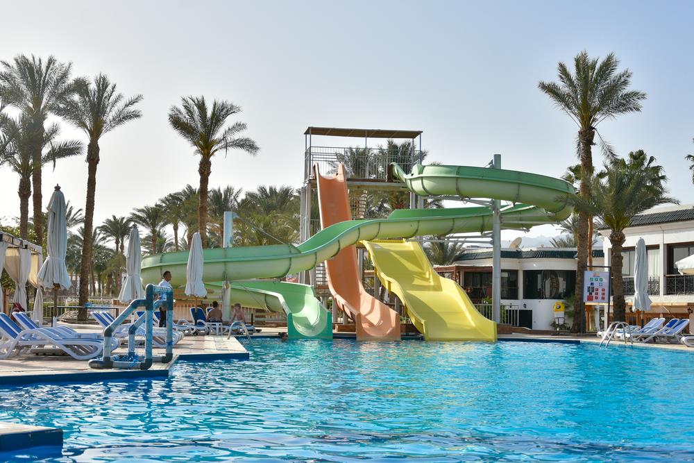 Бассейн, горки. На территории 2 бассейна - у ресепшн и около пляжа. У ресепшн не подогревался и там никогда никого не было, на пляже - вода подогревалась и там вовсю резвился народ. Работали все 3 горки, но с перерывами. Но и этого хватало. Бассейн в грязи замечен не был - сама по утрам видела, как его чистят.