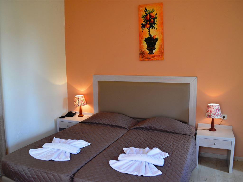 Увидив все это, мы пошли к администратору, т.е. дочке хозяйки и потребовали другой номер, на что нам было сказано, что других номеров у них нет и может быть будет завтра и что то, что нам дали вполне отвечает 3 звездочкам. Она начала с нами спорить и притащила сертификат. Потом сказала, чтобы мы пришли завтра в 10 утра. Мы "спали" в том номере и я всю ночь боялась скатиться с матраца, а на утро жутко болела спина. В 11 следующего дня нем дали другой номер отвечающий 3 звездам, но когда мы пошли на обед хозяйка и ее дочь указывали на нас пальцами и шипели по гречески. А потом типа миро улыбались говорили Хэло, яд так и прыскал и было понятно, что отдых нам испортят.