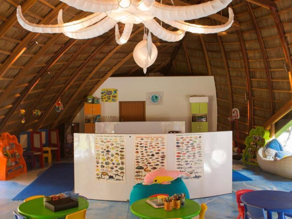 Просто про Мальдивы писать не буду. Напишу конкретно про этот остров. Мы хотели уединения и поэтому брали номера на дальнем краю возле песчаной косы. Имейте в виду что эти номера давно не ремонтировались, состояние не очень. Внутри острова есть совершенно новые виллы с джакузи о которых тут пишут, но и натыкано их прилично - уединиться тяжело. Питание - шведский стол 3 раза в день напрягает. Приходится серьезно сдерживать себя чтобы не переедать, потому что разнообразно и вкусно. Есть детский клуб где можно оставить ребенка на несколько часов. Там есть даже легкий перекус для детей. Персонал англоязычный. Наш ребенок пару раз там развлекался.