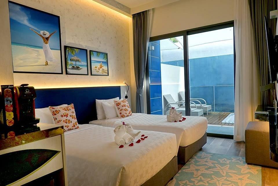 Отдыхали семьей, ребенку 12 лет; 10-21 декабря 2017. Отель находится в самом центре Патонга до Банглароуд рукой подать, все рядом, гуляли там каждый вечер, радует своей новизной и чистотой, придраться не к чему. Номера интересно оформлены в голубых тонах, персонал приветливый. Брали на завтраках, ужины у них интересные видно стараются, разнообразие блюд впечатляет (там же на рецепшене доплачивали за ужины выходит в не дорого). Убираются в номере чисто, техника новая, wi-fi ловит хорошо. До пляжа 3 минуты, в целом впечатление позитивное, советую. Сами полетели отзывов не было на свой страх и риск, но не прогадали, отдых удался...