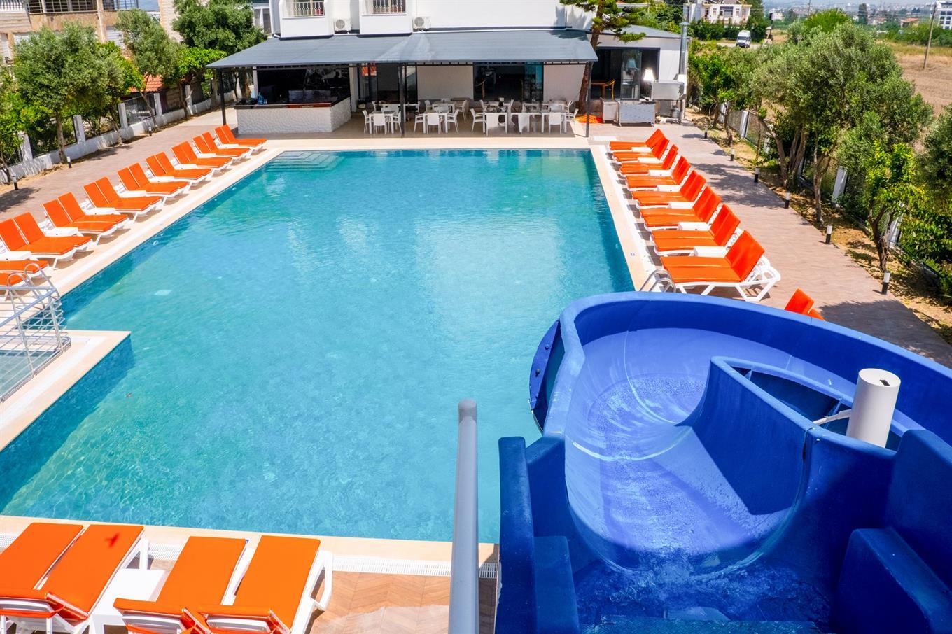 Заселили в неубранный номер с грязной постелью, сантехника со следами пребывания предыдущих жильцов. Воды в номере не было, пришлось идти в ресторан и так каждый день. Убогий отель, телевизоры древние, один немецкий канал. Уборку делают местные женщины, которые приезжая с утра несутся в столовую (она же типа ресторан) и лезут за едой вперед гостей. Там же вместе с отдыхающими питаются вся обслуга и многочисленные гости обслуги. Номер за десять дней не убирали, иногда выносили мусор и делали кораблик из покрывала, оно же одеяло. Еда помои, мяса курицы, преимущественно порубленной в мелкую кость и подливки всем не хватало, т.к. расхватывали голодные тетки. Их можно понять, за десять дней курицу давали 2 раза, в остальные дни соевые колбаски, увядшая зелень, несладкий арбуз, дыня несладкая похожая на огурец. Два дня как приехали, желудки болят и несварение до сих пор, ели то что было, т.к. в поселке есть пару кафе, но там тоже мяса нет, сидят одни немцы, дуют пиво, нам было не комфортно. Сходить некуда, скучно, деревня, но фруктов и базара нет, вернее он есть, но раз в неделю, в среду, надо ехать минут 15, там небольшой выбор, цены высокие и не скидывают, т.к. немцы их разбаловали, они не торгуются. В Турцию больше не поедем. Очень навязчивый водитель Осман в отеле, он себя рекламирует в качестве врача, пристает к женщинам без мужчин, может хлопнуть по заднице и на лежаке сдернуть купальник и лапать, причем женщине было примерно 60 лет, как и ему, жесть! Очень ленивый бич бой, пристает к одиноким дамам независимо от возраста, мажет без спроса своим маслом для загара, некоторые шарахаются, некоторые млеют. Это все зрелища, анимации нет никакой, в город мотаться на долмуше 2 доллара с человека в один конец. В общем рейтинг у отеля не соответствует действительности. Раньше я думала, что отзывы пишут негативные зануды, сама никогда не писала, но в этот раз решила поделится, т.к. никогда так не ждала окончания срока выезда из этого гадюшника, рядом много сураловских отелей, завидовали их постояльцам и жалели что решили сэкономить.