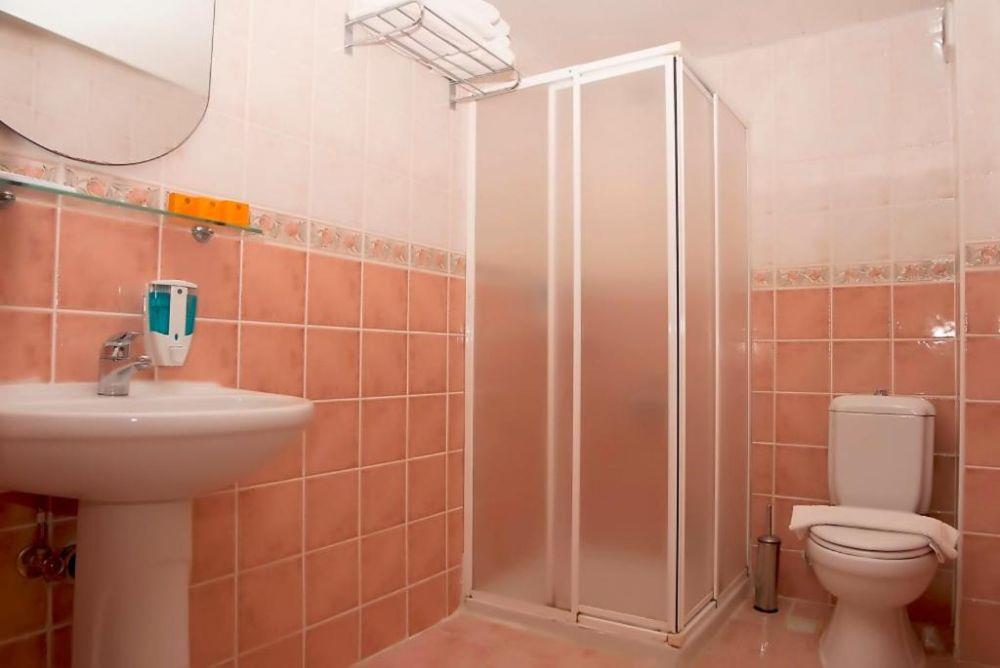 В душе есть жидкое мыло и гель для душа. Есть фен, неплохой мощности. Также были шапочки для душа. Порадовал душ, закрывающийся со всех сторон. Полноценная душевая кабина. После принятия душа, вода не заливала все помещение…