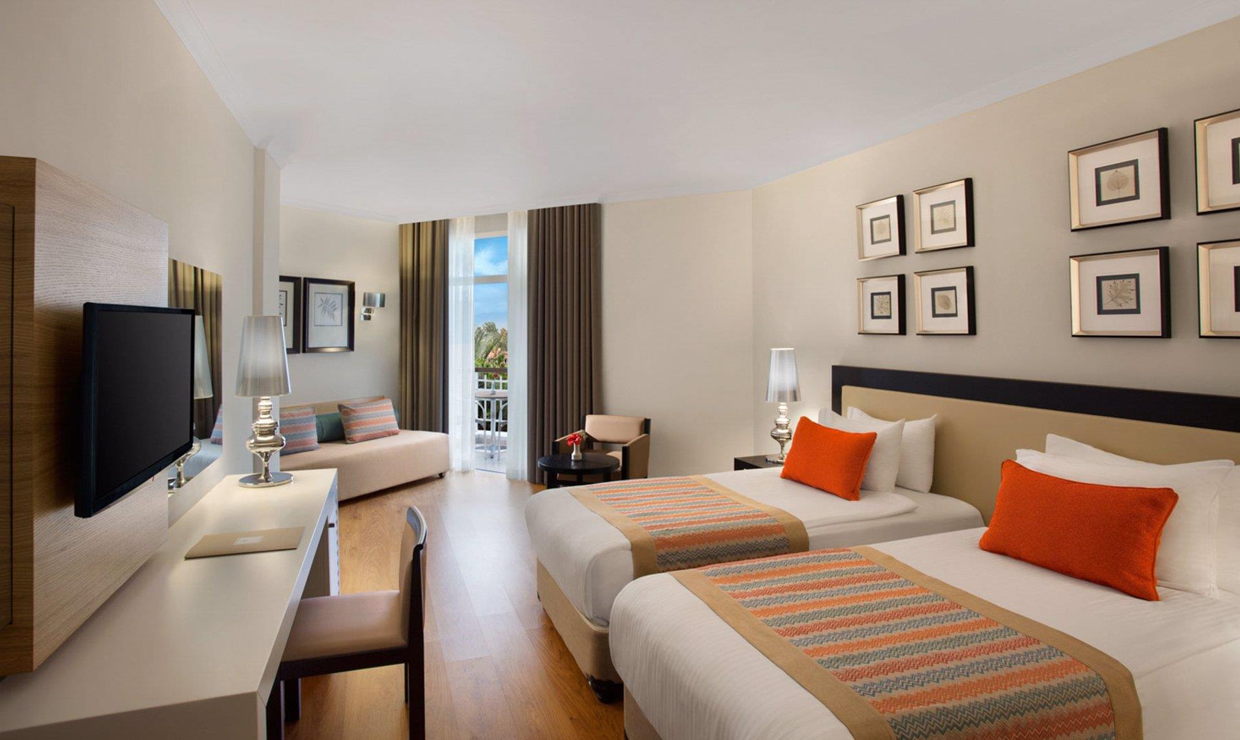 Номер средний, уборка всегда совпадала с послеобеденным отдыхом – мы от нее отказались, а также от смены постельного белья через раз. Полотенце пахнут, не знаю чем. Карт-рум дали только одну, было очень неудобно, т.к. нас двое. Только в конце сказали, что можно получить вторую карт-рум. Также не сказали, что кондиционеры на ночь выключают. Ночью они работают как вентиляторы, балкон не открыть – шум от внешних вентсистем, а температура 24 - 26 градусов Цельсия.