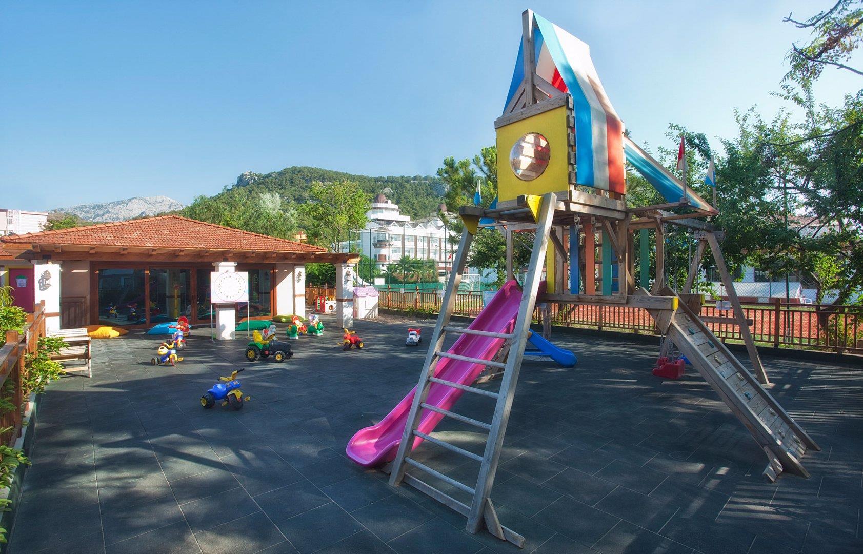 Отдыхали в отеле с 9.06-16.06.13! Я поехала с дочкой 3,5 года и еще 3 моих подруги!Начну с расселения, приехали мы в отель в районе 6 вечера, нам сразу дали номера, мне с дочкой и подургой дали номер в старых корпусах, скажу что номер вполне хороший, просторный,Сейф бесплатно,минибар каждый день пополнялся, но есть одно лично для меня очень !!!БОЛЬШОЕ НО!!! - это то что в ванной комнате установлена ванна и вместо душа я имею ввиду смеситель со шлангом вкручен мини душ он не съемный, купать ребенка для меня было просто ужасно, так как ты не можешь держать в руке шланг душевой и обмыть ребенка вода брызгает и на лицо и волосы.... Зато наших подруг поселили в главном корпусе в номер с хорошим ремонтом и санузел у них соответственно был с нормальным дущем, приходилось купать ребенка к ним ходить....Вот это на мой взгляд единственный самый большой недостаток!! Дорогая администрация отеля поменяйте в старых корпусах души!!!фото я выложу душа, чтоб люди меня поняли....Просто я отдыхаю в турции уже 9 раз и у меня такое с душем впервые!! Далее миниклуб хороший аниматоры девочки очень внимательные, но вск таки мини диско немного для детей постарше от 5-6 лет для малышей 3-4 года не много рановато,мы были в отеле PGS World palace. вот там да диско было для малышей супер!! Питание в ресторане хорошее, для детей есть каши разные и т.д..Аннимация для взрослых тоже интересная и не навяз чивая!!! Напитки не разбавленные, что не мало важно!!Диско клуб напитки после 12 ночи платно , в принципе как и везде..Пляж хороший, с лежаками проблем не было вообще, на пляже детская песочница что для нас это было просто супер!!! В целом отель нам понравился! Поехали ли б еще в следующем году ,Если поменяете души!!!)))