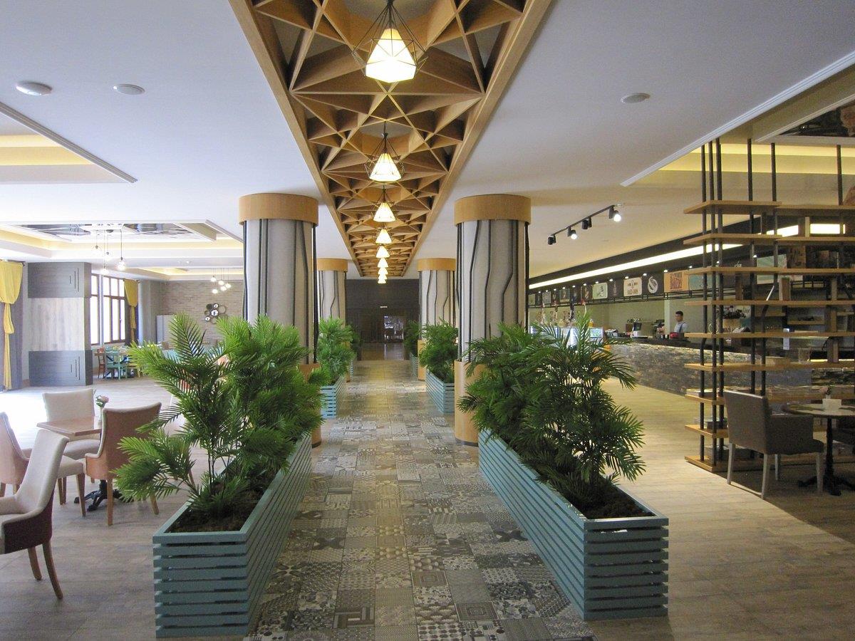 Номер порадовал больше всего, большая территория, большой бассейн, анимация на "4", еды много, вечером ходили в 8 часов, как раз попадали на свободные места, сауна и хамам бесплатно, ходили каждый день,вечером после моря, рядом ещё два бассейна. Но огорчил заход, на волнах попрыгать не удалось, так как плита очень опасная! По этому детей затащить было сложно, плавали от мостика до берега, так что ,кто едет за лечением с помощью море, не вариант вообще. Летали на парашюте, видно что эта плита лежит по всему берегу, так что ближайшие отели с такой же проблемой.