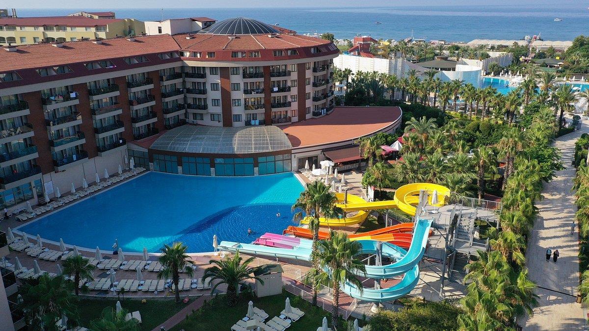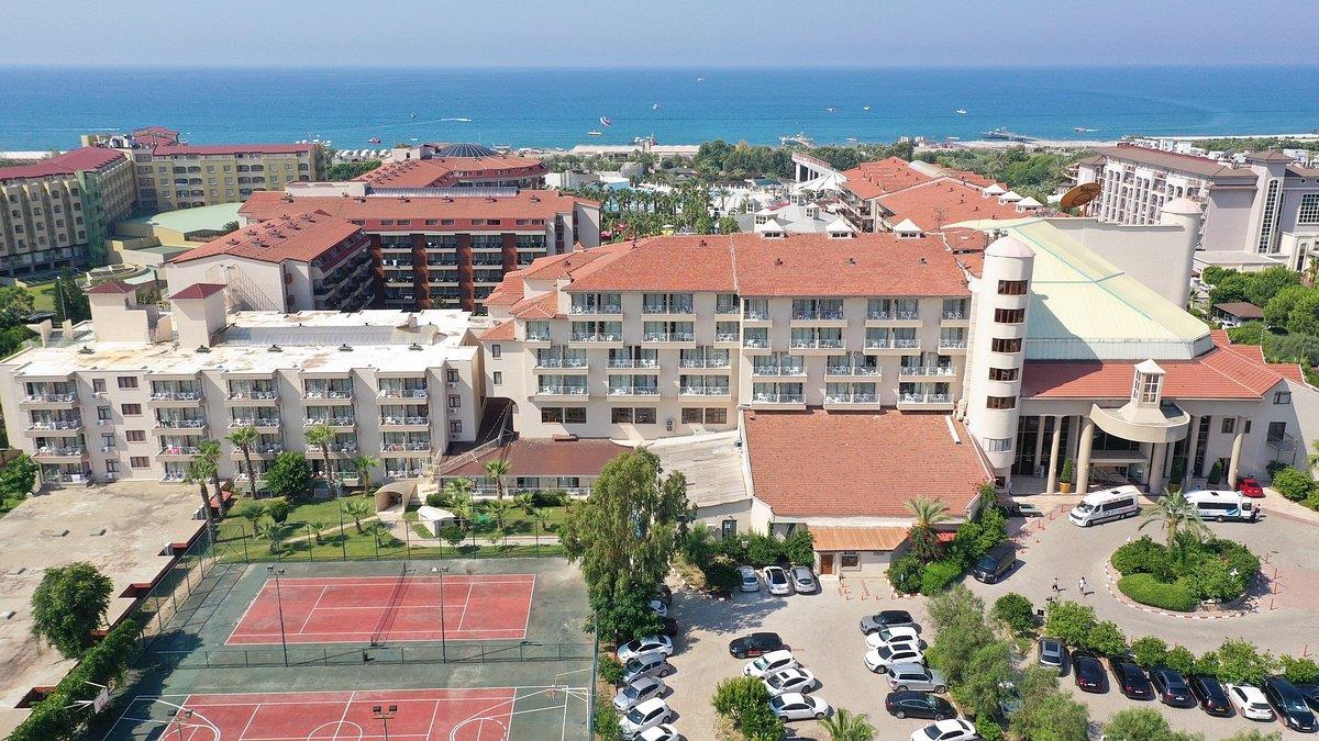 Выбирали отель по тому, что предлагал туроператор и по цене. Сразу скажу, все отзывы, которые читала об отеле-правда: и плохие, и хорошие. Заселение прошло без проблем, т.к. мы приехали в 5 вечера. Брали двухкомнатный фэмели рум. удобно. Весь отель довольно обшарпанный. работники отеля не утруждаю себя соблюдением чистоты и порядка. об уборке: уборка ежедневно, ненавязчиво, т.е. на балконе за 2 недели никто не убирал и т.д. минибар - более, чем скромно - 2 шт по 0,25 мин.воды, 2 шт - по 0,2 сок и 1,5 л. питьевой воды. бар пополнялся не всегда, а как хочет персонал. белье должны менять каждые 2 дня - по факту - каждые 4. полотенца должны менять ежедневно. по факту - как придется. питание: голодными не останетесь, но без изысков.морепродуктов не было. главный ресторан один и большой: в здании и на улице. столы на улице пластиковые и пластиковые кресла, которые часто были грязные (в шоколаде, остатках еды и питья), официанты очень не заморачиваются. никто ничего не наливает, как это принято. на столах вообще нет фужеров и чашек на завтрак - самообслуживание.бассейнов много - но там болели из-за палочки в бассейнах, поэтому купались в море. пляж - хорошо галечный, вхож в воду - галька, потом в воде каменная платформа, скользкая от водорослей, через 15-20 м от берега - обрыв платформы. выпивка - только водка, джин и виски (вино не считаем).Одним, словом, есть с чем сравнить - это не 5*. явно мы не повторим поездку туда. территория - небольшая, зеленая, приятная, но без изысков, опять же. Хорошо - бесплатная сауна и хамам. цена на традиционную турецкую процедуру в хамаме - пенный массаж и аромомассаж - 54$. ругаться с персоналом на ресепшене и с гастрилейшен практически бесполезно. НО ОЧЕНЬ БОЯТСЯ ОТЗЫВОВ В ИНТЕРНЕТЕ. поэтому и пишу. не рекомендую. нам было с чем сравнить. до этого были в Белеке (палома Грида виладж), в Сиде (папилона Муна), вы Анталье (Сера), в греческих Митсисах.Если кого-то интересует более подробно -спрашивайте. Ездили с Анексом, могу назвать ценв на экскурсии.