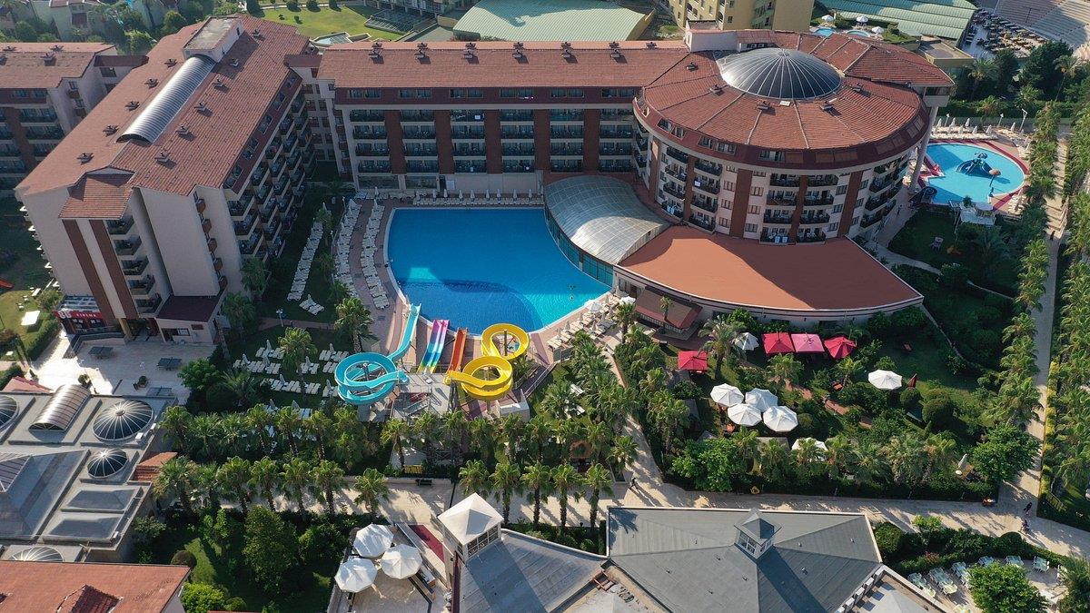 приехав в данный отель я и супруга были расстроенны номером которрый нам сразу дали, т. к хотелосьвид на море или хотябы с видом на территорию, данный момент был быстро решен на ресепшене и нам дали номер на последнем этаже с видом пости на всю территорию. чему несказанно были рады. в общем отель произвел неизгладимо положительное впечатление, во-первых большая территория можно хотябы погулять, шикарный выбор разнообразных блюд, выпивки, очень приветливое обслуживание на барах, я понимаю что это их обязанность, но по краине мере видно было что они улыбаются не через зубы, а с моей внешностью отношение было как к своему , отдельное спасибо группе аниматоров , честно ребята мастера своего дела и особое спасибо Баркану,Байкутаю, Джамалу, Ярси,сейчас не всех вспомню, но ребята реально развлекали и недавали тупо скучать им большой респект и уважуха =), также поразила работа представителей тез тура в отеле очень все оперативно делают и помогают. вообщем отель СОВЕТУЮ, согласен что может не все отметил но мы с женной реально нехотели уезжать на столько этот отель дал нам заряд положительной энергии на следующий отпуск. яб с удовольствием еще раз приехал в этот отель но пока молодой хочется еще в какие нибудь страны сьездить ! надеюсь мой отзыв хоть немного поможет в выборе отеля..