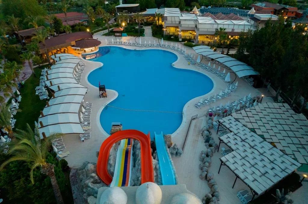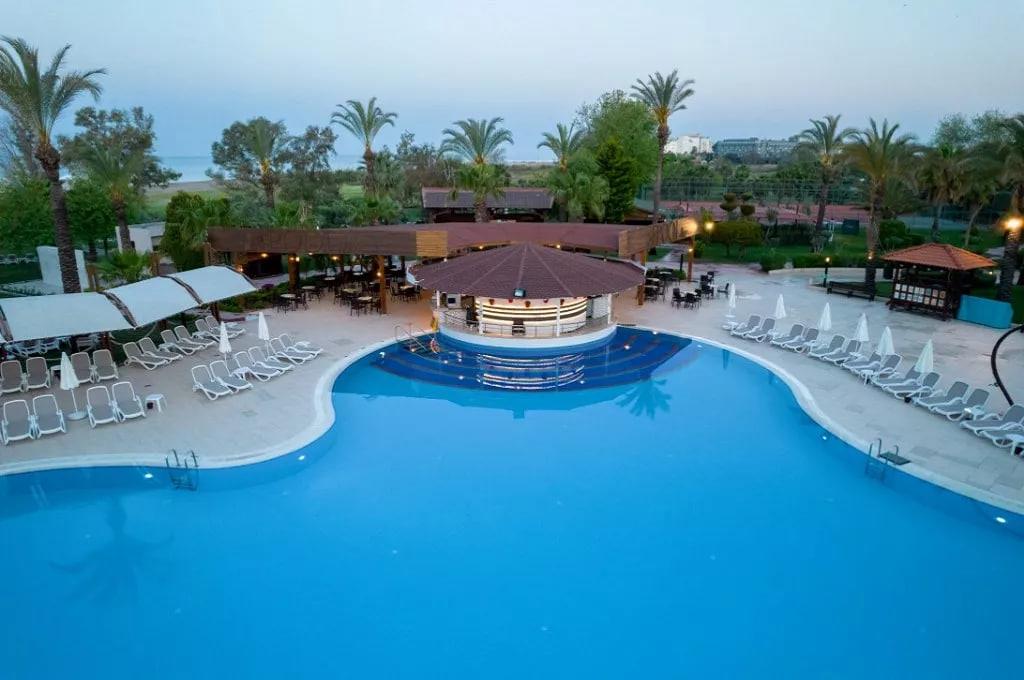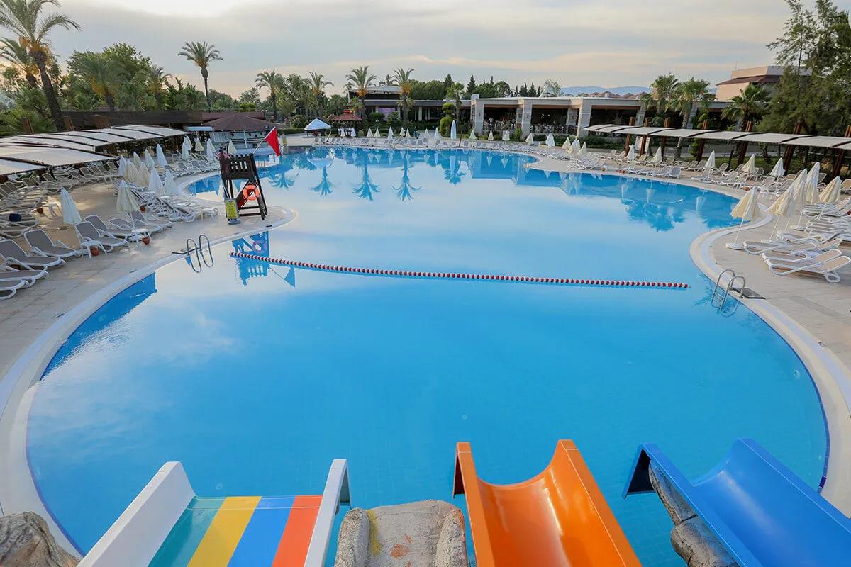 Отдыхали в прошлом году и в этом в одно время, есть плюсы и минусы. По-прежнему хорошее питание и очень ухоженная территория, чистые номера и бассейны. Из минусов- полотенца бесплатно только при заезде и не у бассейна, а прямо на ресепшене, причем о том, что Вам надо их взять, никто не говорит, а дают карточки, и неизвестно, где их менять, т.к. в том месте у бассейна, к которому мы в прошлом году ходили их заменять ежедневно и бесплатно, втечении первого дня никто не пришел, и т.о. пробыв первую половину дня без полотенец и заподозрив неладное, мы пришли на ресепшен и узнали новшество- вот вам полотенца, но если надумаете поменять- за плату. В рекламе отеля такой информации не было, как и сообщения о том, что мини-бар заполняют только при заезде и очень скромно, а в прошлом году было ежедневно. Меню в ресторане тоже уменьшилось, но всего хватает, т.к. сам ресторан большой и скопления людей нет никогда. Красиво перестроили ресторан "ля-карт", а в баре на пляже вечером предлагают рыбный ресторан и успешно травят при этом едой. Но в обычном ресторане питание выше всяких похвал.Порадовал живой уголок, во-первых, свободнее стал доступ, т.к. нет той ужасной лающей собаки, во-вторых, появились свободно гуляющие по лужайкам кролики! А также козы,овцы,гуси, павлины, цесарки и птицы попроще. Анимация просто дохлая в этом году- два одиозных немца- лысый, который думает, что он Вин Дизель, и какой-то длинный татуированый балерун, которому все пофиг, и видели его один раз только, а к Дизелю прилагались еще три фрау - толстая, лохматая и блондинка. Абсолютный ноль. Отель сильно пожалел затраты даже на турецкую ночь, приехал тот же грузинский детский ансамбль, что и прошлый год, но дети танцевали в этот раз очень плохо и очень недолго. Больше ничего предложено не было. Отель очень уютный, море просто замечательное, горки в бассейне работают достаточно долго, мороженое есть, но уже только у бассейна, на пляже нет, с барами все по-прежнему, сначала немцы, а потом и Вас заметят, но если говорить, хотя бы пытаться, по-турецки, они запоминают, во всяком случае, им нравится. Персонал в большинстве тот же самый, и они великие труженики!Если подвести итог, этот отель милый, ухоженый и очень тихий,т.к. на этом участке берега, окаймленном холмами и рекой по сторонам, расположено только два отеля, и без населения, и только для своих внутри несколько магазинчиков.