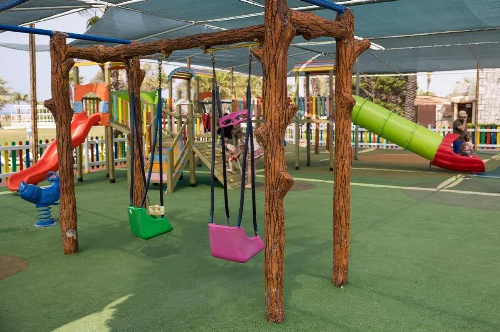 Много пальм. И всяко разной зелени. Достаточно все ухоженно. Все время там убираются и все моют, и я не разу не видела там мусора. Контингент в этом отеле 90% немцев. Из-за этого сервис хороший. И к русским отношение такое же. Много детей. И вообще там все рассчитано на детей. В ресторанчике есть специальные детские стульчики, есть детский бассейн и детская горка. Весь персонал очень хорошо относится к детям, даже немного лучше, чем к взрослым. Им все дают без очереди и выполняют их капризы.