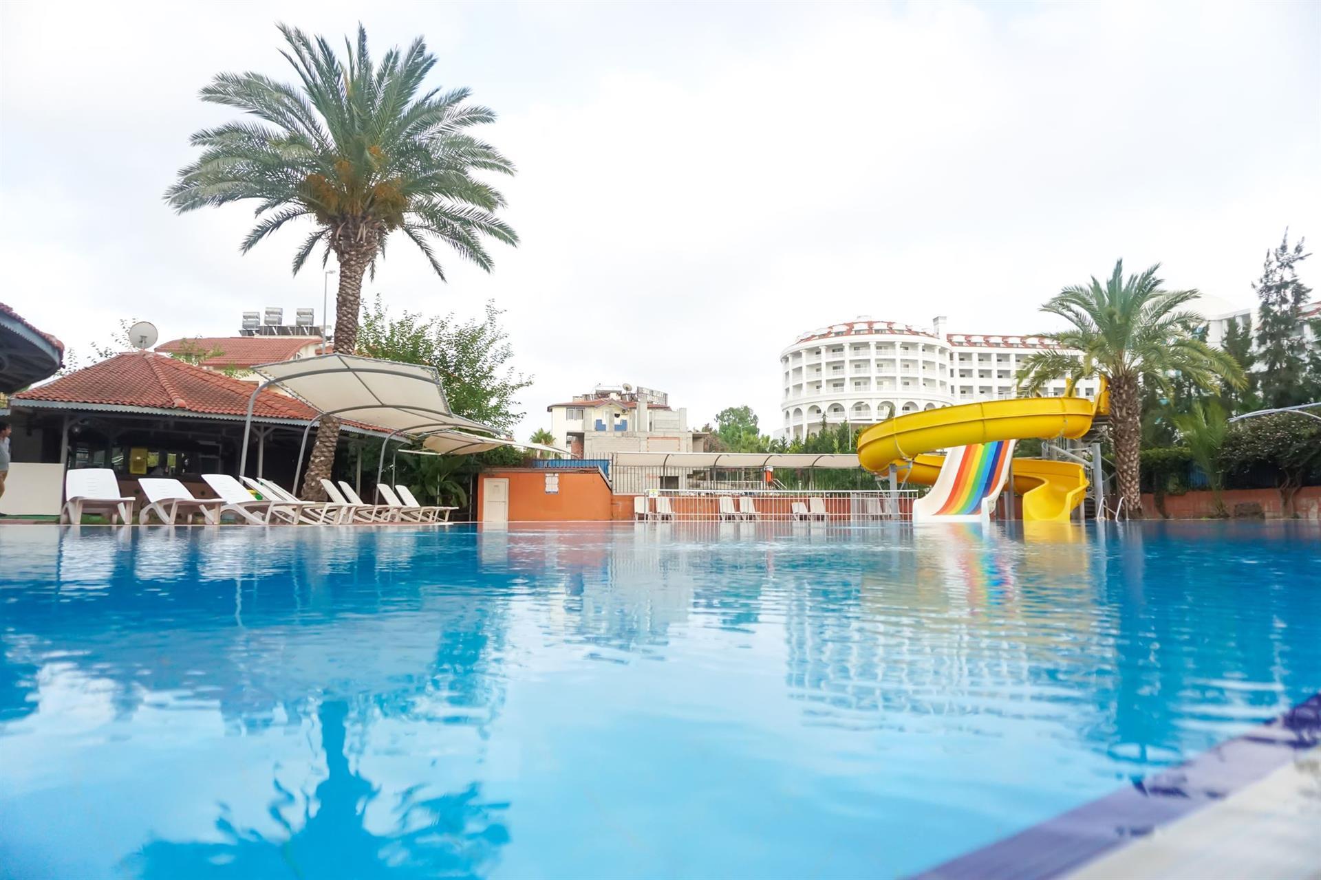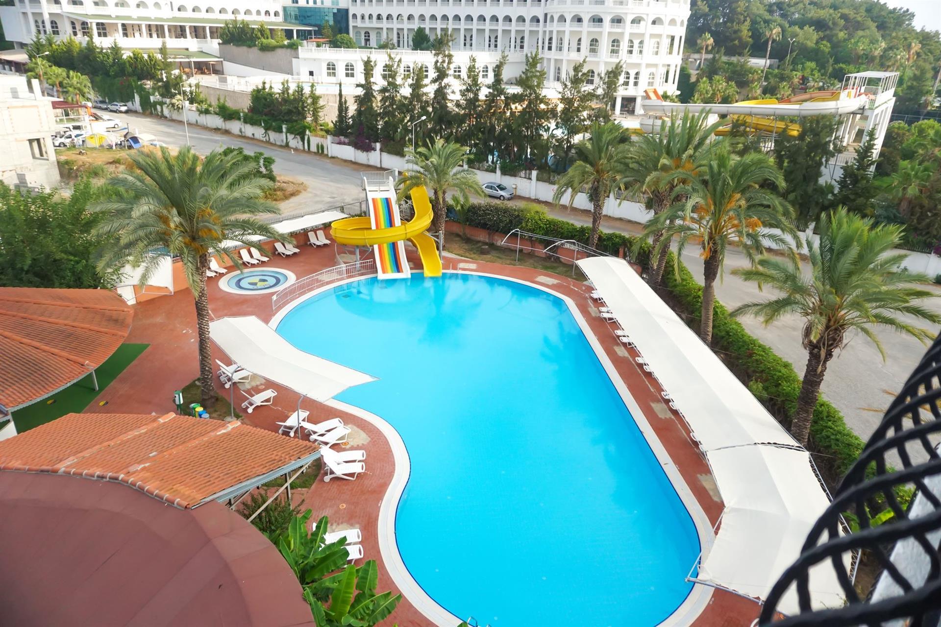 У отеля нет своего пляжа так что если вы идете на пляж то лучше возьмите с собой доллары, что бы купить себе шезлонг... как только выйдете на дорожку вдоль пляжа советую идти налево до кафе-ресторана под названием Linda (напротив него в море пришвартован Пиратский корабль) и тут же можно купить себе шезлонг не за 2$ а за 1$ ! По вечерам в отеле, при полной загрузке наблюдается недостаток горячей воды!