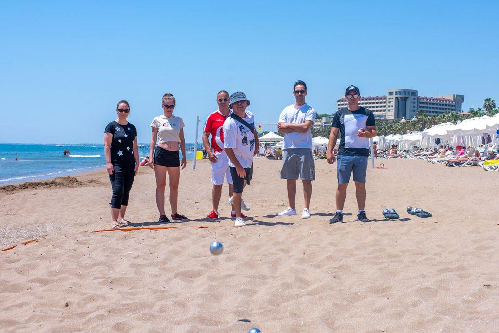 Море - 2 минуты пешком от самого дальнего корпуса. Пляж отличный, песчаный, очень долго в море мелко, удобно для детей и неумеющих плавать. Сильных штормов в заливе не бывает. Тентов, зонтиков, шезлонгов, матрасов хватало всем, пляжные полотенца не выдаются. Анимация только немецкая, но говорят, что ждут русскоязычного аниматора, который должен вот-вот приехать. Для немцев программа хорошая. Более 2/3 отдыхающих - немцы. Персонал по русски не разговаривает.