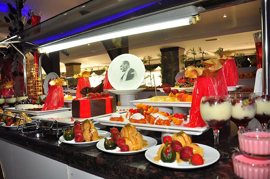 Вот здесь следует `посмаковать`. Выбор довольно скромный, т.е. ни в какое сравнение с обычными 4* в Турции не идет - его практически нет - это из того, что выставлено. Но выставляют очень много в прямом смысле слова несъедобного: испорченного, много дневного, прокисшего и т.д. Поясняю: например, на сегодня была приготовлена отварная картошка. Все, что осталось несъеденным на ужин предложат еще раз, но возможно с каким-то еще соусом. Если снова осталось - не беда - на завтрашний обед из нее можно сделать чудесное пюре, обжарить ее или добавить в салат. Я уж не говорю про десерты. Там проще: если на обед остался непонятной формы кусок тортика - его подравнивают, по бокам украшают сливками и фруктами и снова предлагают на ужин. Колбаса в нарезке так простояла 2 дня, на третий ее порезали, обжарили и добавили лук (сырой) - чем не мясо?!