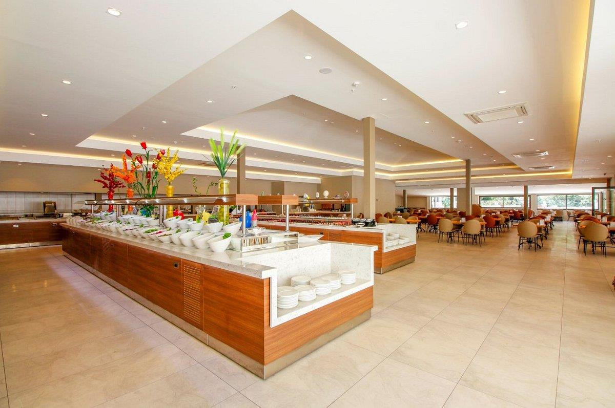 Ресторан в отеле - шведский стол.Много блюд из мяса и рыбы, салаты, супы, гарниры, пирожные,фрукты,мороженое... Всё вкусное и свежое.