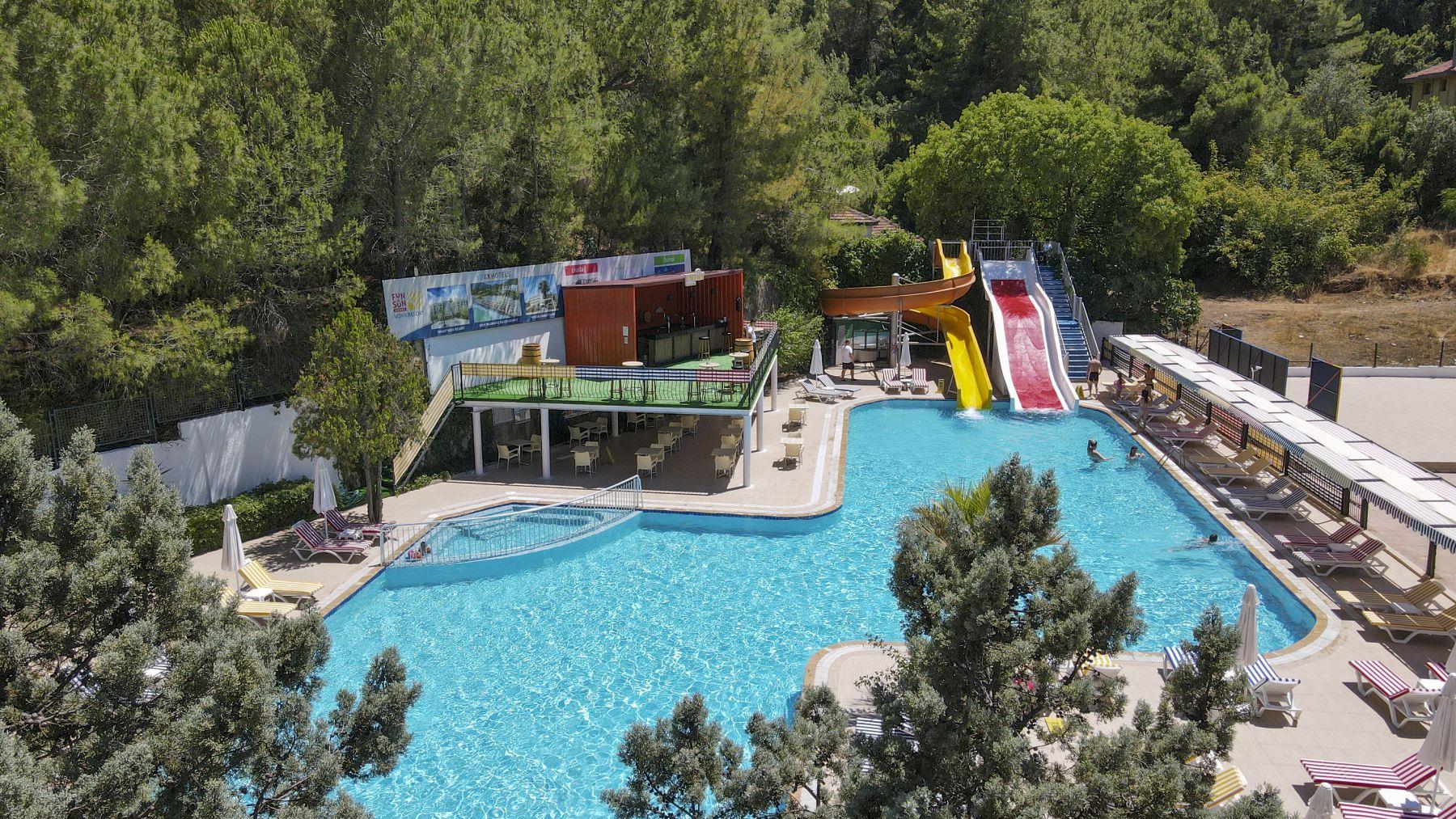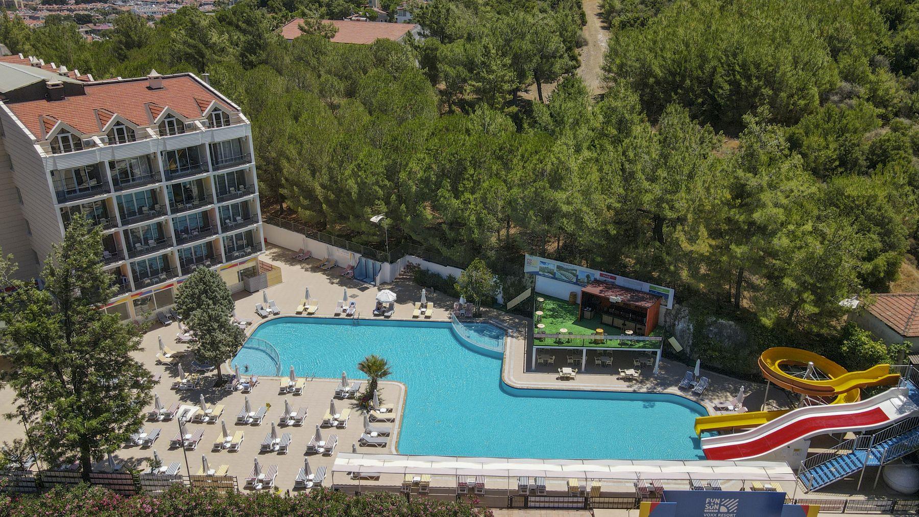 Отель больше для нетребовательной молодёжи. Анимации практически нету, дискотека только для детей, причём каждый день одно и тоже. В 23.00 от отеля отходит автобус на Барстрит, и в 3 часа утра забирают обратно в отель. На пляж тоже ходят 3 раза в день автобусы. Лучше ехать на пляж в Ичмелер (посёлок рядом с Мармарисом), там НАМНОГО лучше, и главное чище, чем на городских пляжах.