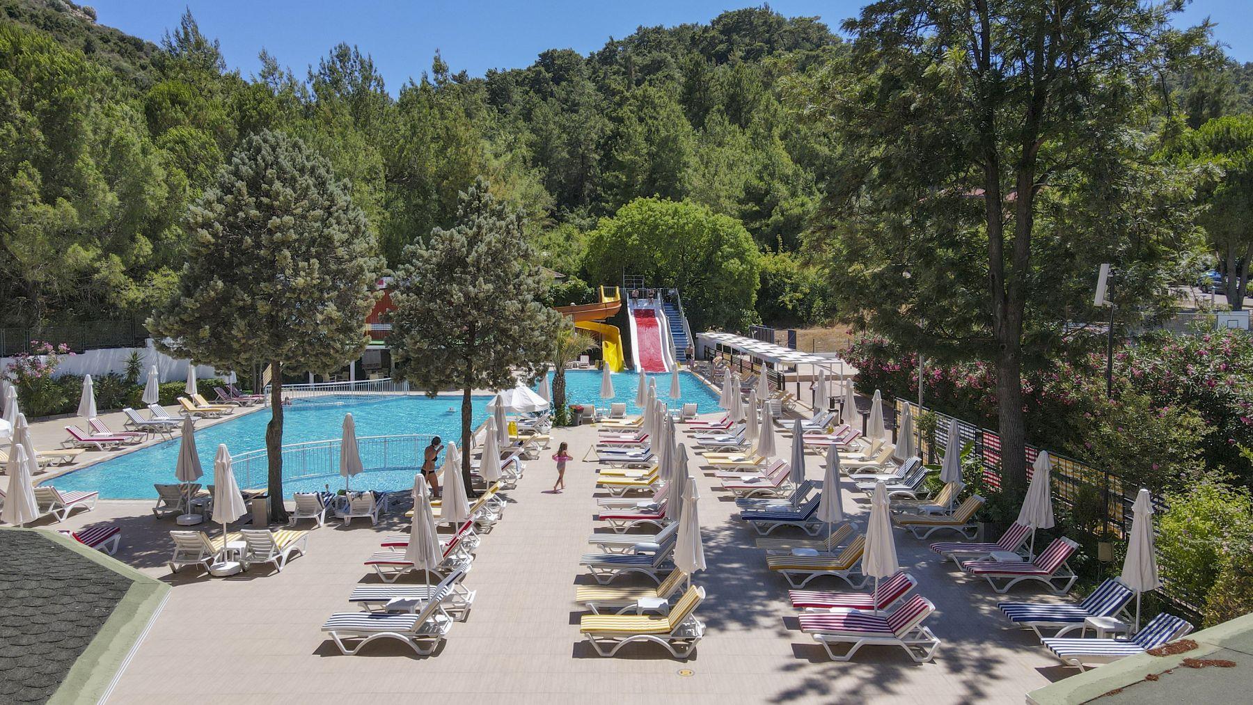 Мы сегодня прилетели из Турции. Хочу сказать что отдых удался Мы мечтали побывать на ПАМУККАЛЕ и поэтому выбрали Мармарис т.к. это город ближе всего находится географически к этому чуду Турции.Экскурсия замечательная и г.Мармарис тоже отель выбирала не дорогой но была приятно удивлена номера уютные мебель новая, кухня тоже порадовала Недостаток в том, что на рецепшене никто не говорит по русски приходится объясняться жестами и на ломанном английском.Вообще там отдыхающих русскоговорящих наверно 30% в основном англичане, немцы. Анимация есть но мне не хватало аква-аэробики .((( Что касается моря до одного берега идти,мы засекали 30мин! На другой более удачный пляж возит автобус от отеля расписание составлено так, что вы целый день загораете и купаетесь при этом пропускаете обед, мы назад возвращались раньше сами на маршрутке. В отзывах пишут что рядом кладбище если бы я не знала я бы его и не заметила оно огорожено забором, но еще слышала, что видно с некоторых номеров у нас был удачный номер вид выл на город. Еще хочу отметить, что там есть аппартоменты это двухуровневые номера со стиральной машинкой. По сравнению с соседними отелями наш не находится у дороги, территория маловота но всё в зелени есть бассейн и две горки, для малышей отделены лягушатники. Цена на мой взгляд соответствует качеству.Желаю всем приятного отдыха!!!)))