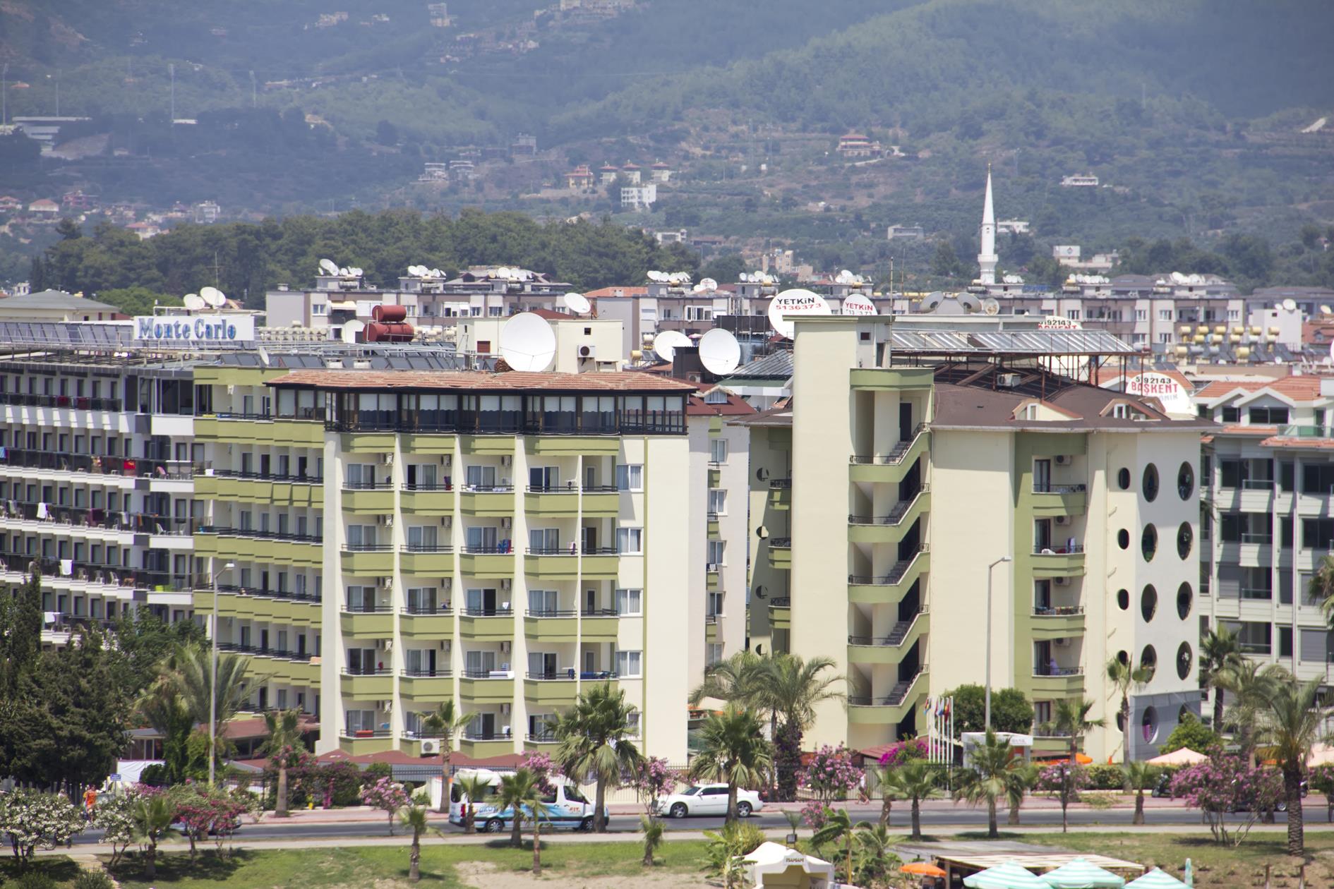 Месторасположение отеля довольно удобное: пляж - через дорогу, до центра Алании можно доехать на автобусе за 2 лиры на человека или пройтись пешком (около получаса неспешным шагом по набережной), прямо за отелем расположена торговая улица. Отель состоит из 3х корпусов. Нас заселили в главный корпус. Номера просторные, мебель хоть и не новая, но в нормальном состоянии, уборка проводилась каждый день (полотенца менялись только после того, как их кидали на пол).