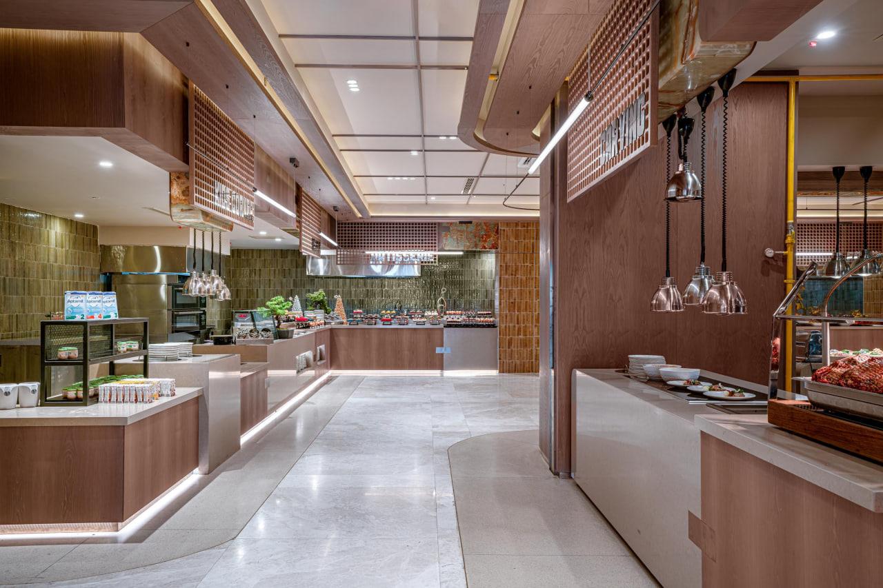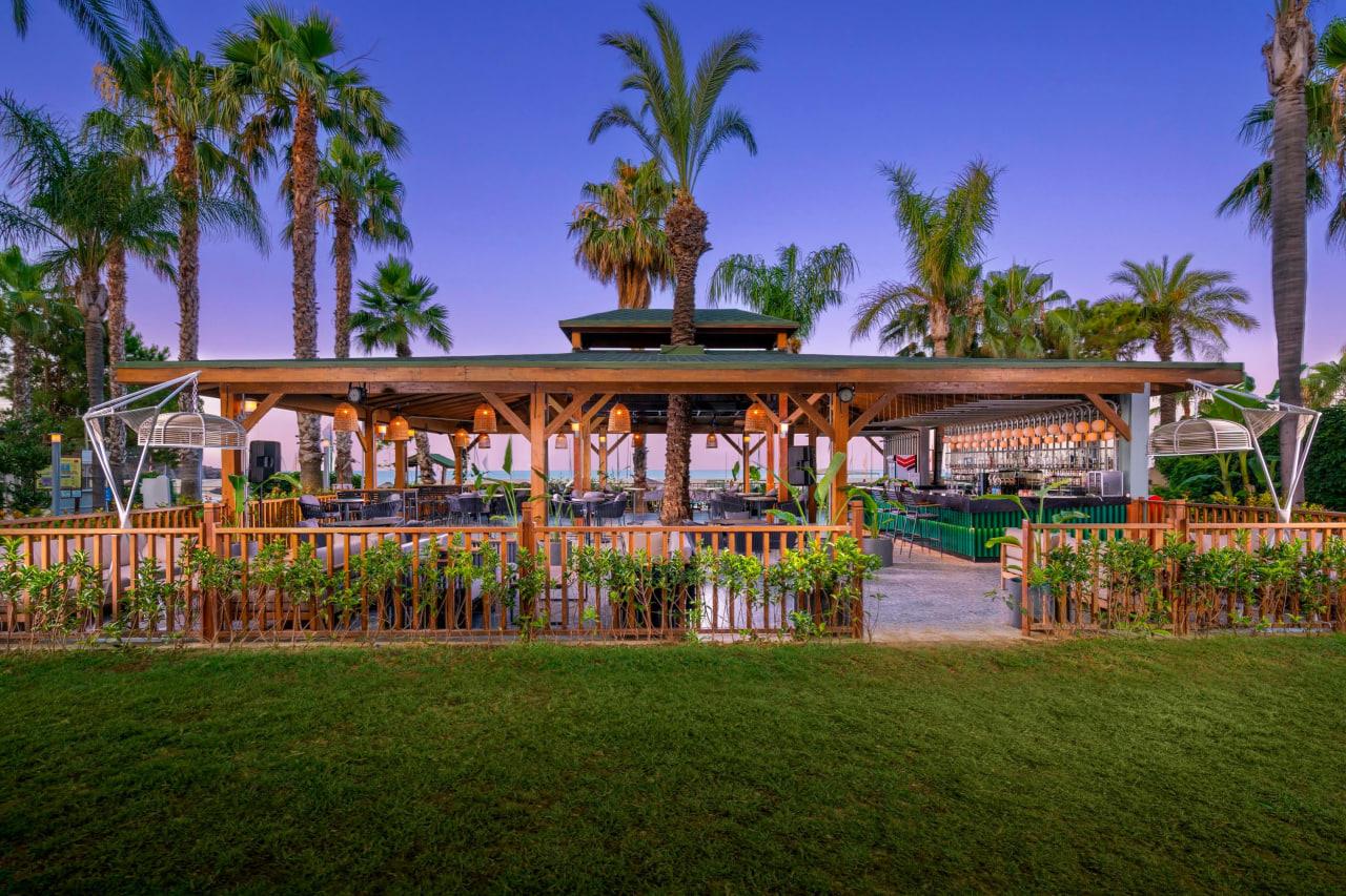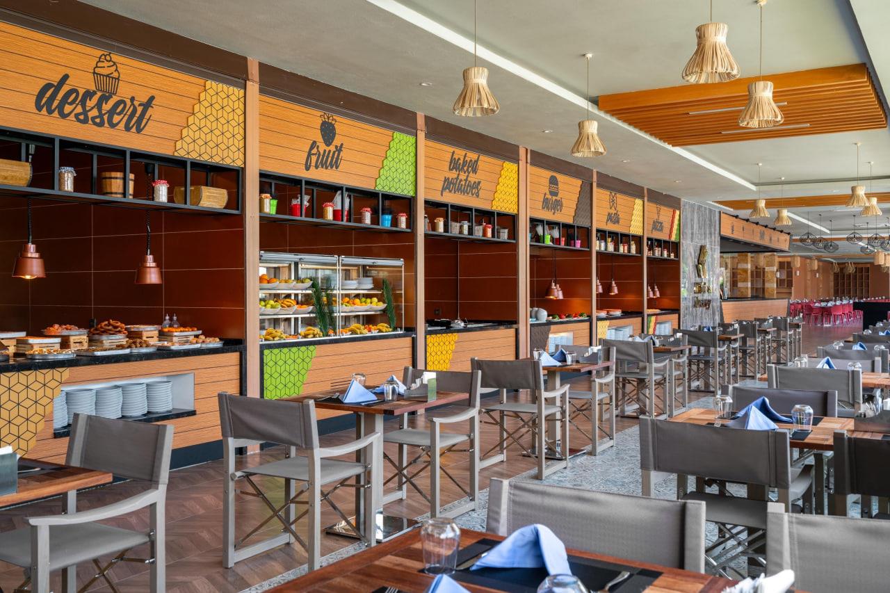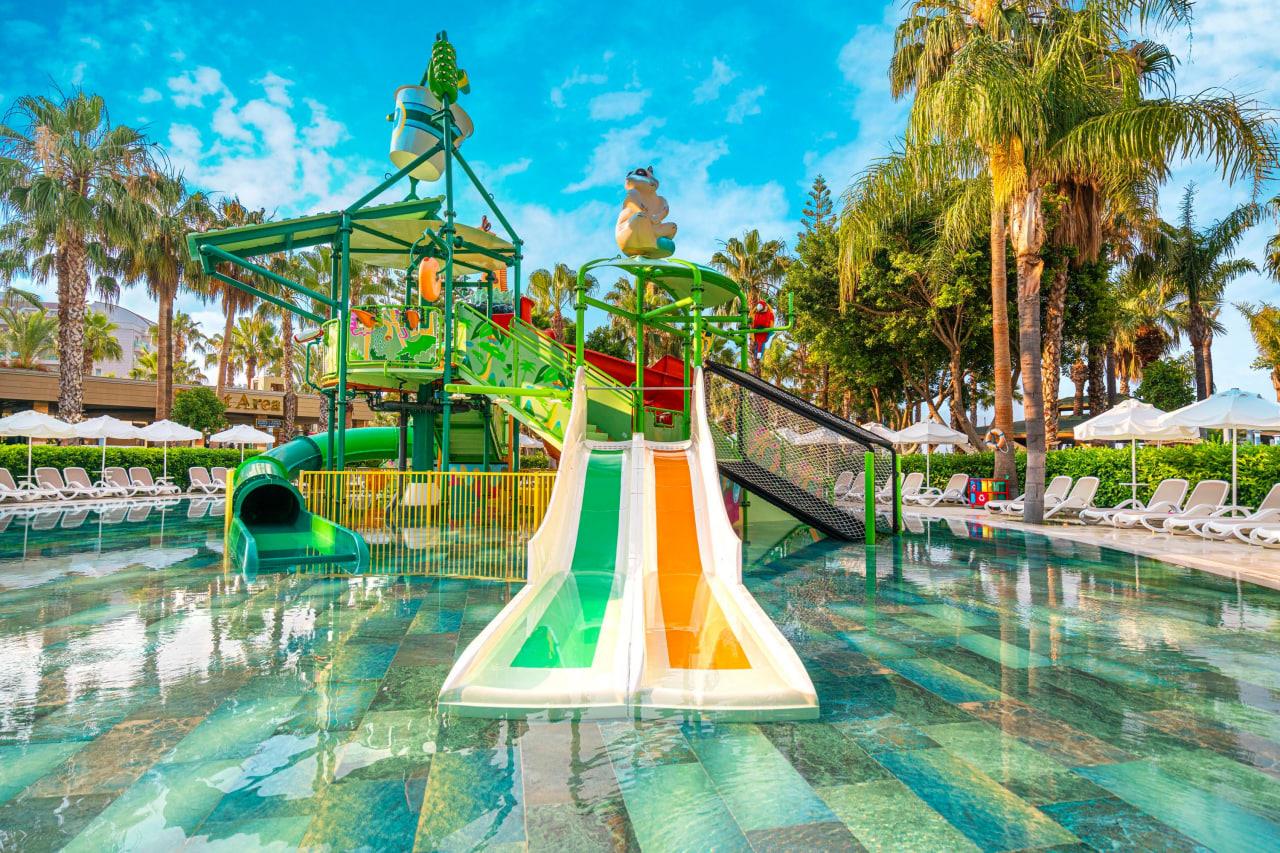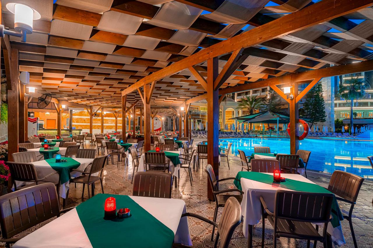 Отдыхал с семьей в мае 2017. Не разделяем восторги отдыхавших здесь. Отель позиционирует себя как пятерка делюкс, работающий по системе Ultra All Unclusive. Основные претензии по питанию и напиткам. Мяса нет, только рыба и курица. Из фруктов только яблоки и апельсины. Детского меню нет совсем, хотя вроде семейный отель. Ребенка накормить было практически нечем. На завтраке не было молочных каш. В обед ребенок ел одни макароны все 9 дней. Не было супов, кроме йогуртного и чечевичного. Котлеты тоже есть было невозможно. Нормальных пакетированных соков тоже не было, только химия из автоматов. По поводу питания общались с главным менеджером Лилей (с Молдовы), даже она сама не ела